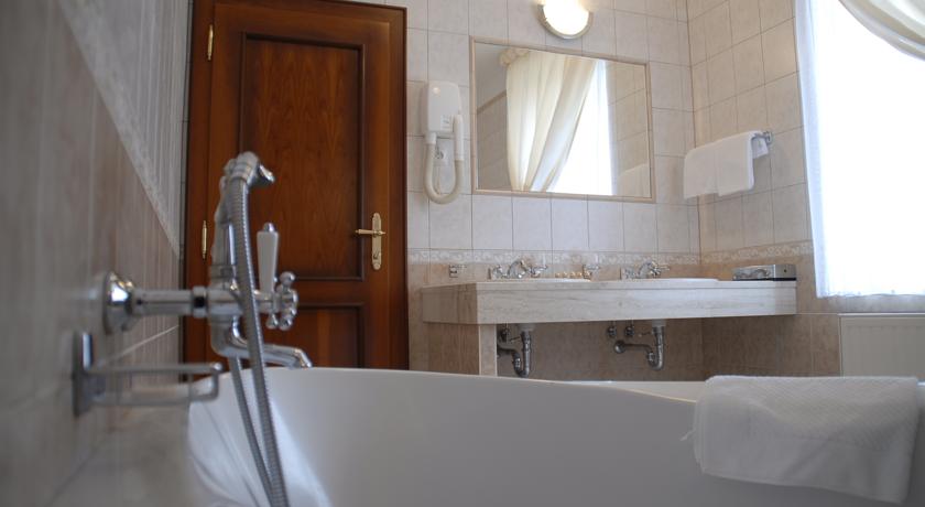Ванная комната, туалет, телевизор ( русские программы ОРТ, РТР, НТВ, Интер фильм, 1+1, Euronews и Planeta sport на русском языке ), спутниковая антенна, телефон с прямым выходом, мини бар, сейф, фен, халаты и тапочки, косметический набор, возможно поставить дополнительную кровать. Детская кроватка 10 евро/день. Размещение с животными 15 евро/день.