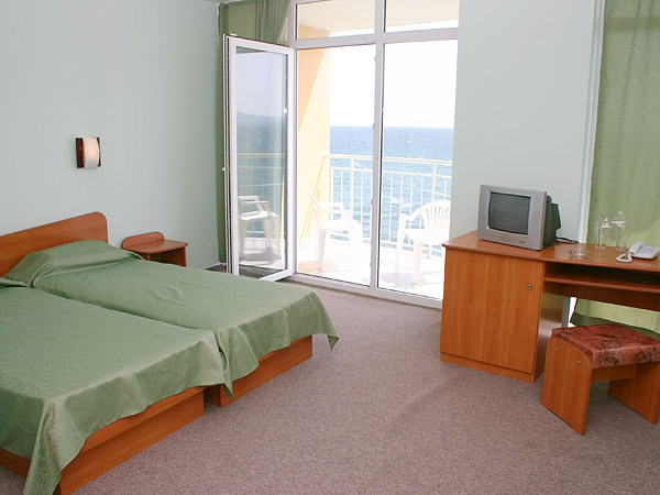 - Dbl – двуспальная кровать / две отдельные кровати, вид на море, вид на парк, кондиционер (только в корпусе «Pomorie Beach»), TV SAT, телефон, холодильник, балкон, душ.