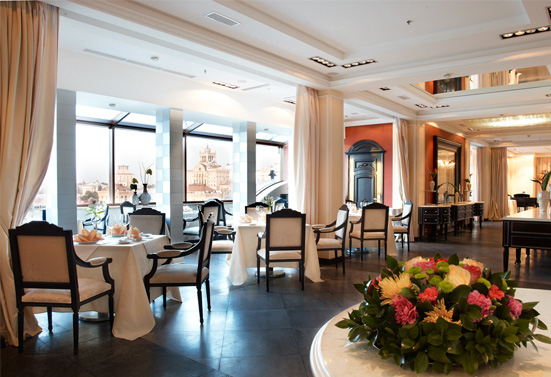 Restaurant "Atmosphere" is located on the roof where guests can admire the panorama of Kiev