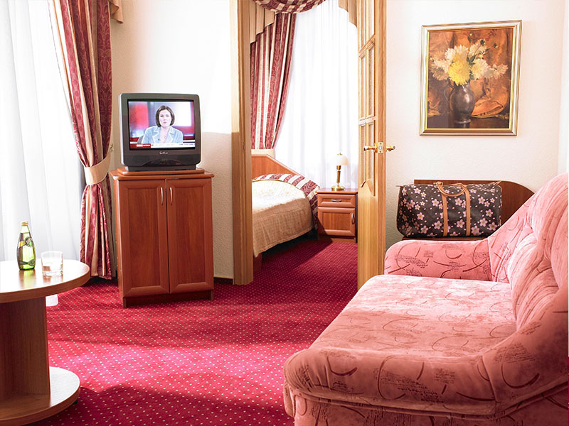 Spacious Suite with a total area of 40-50 sq.m. Suite offers a large living room with a couch and a cozy bedroom.