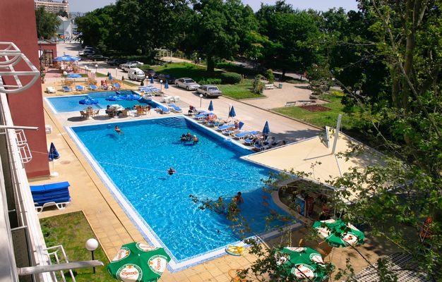 Расположен на 1-й линии на курорте Золотые Пески. Категории номеров: 133 стандартных двухместных, 9 апартаментов Lux, 3 Junior Suite