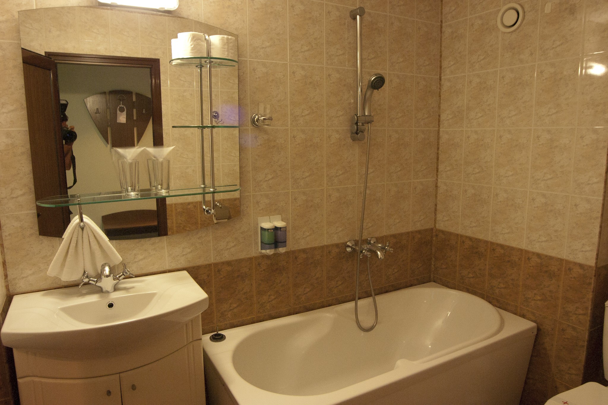 Во всех номерах есть плазменный телевизор, кабельное ТВ, холодильник, ванная комната, туалет, ванная и фен, центральное кондиционирование воздуха, мини-бар ($).