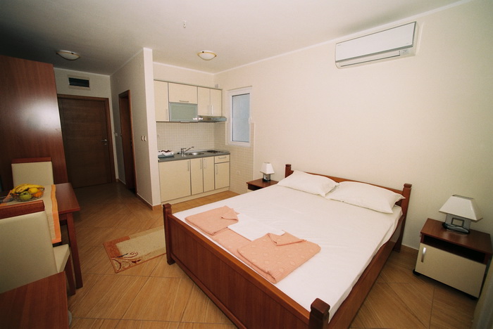 - Студио: балкон, большинство номеров с видом на море.