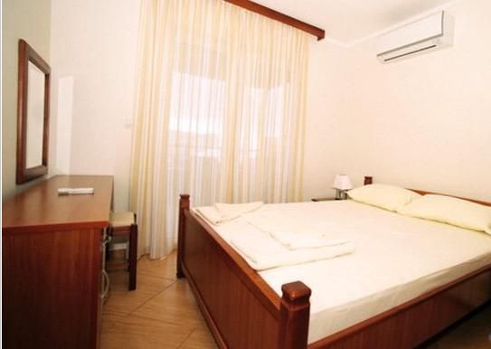 - Апартамент: спальня с двуспальной кроватью, гостиная с раскладным диваном и креслом, терраса.