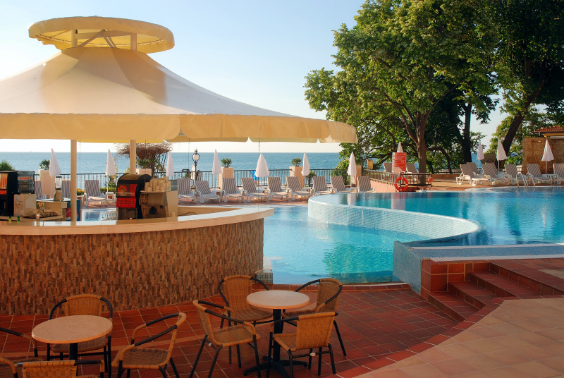 - Открытый и закрытый бассейны, лежаки и зонтики у бассейна;