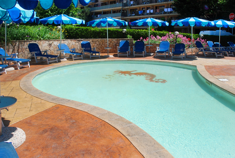 - Открытый бассейн, лежаки и зонтики у бассейна;