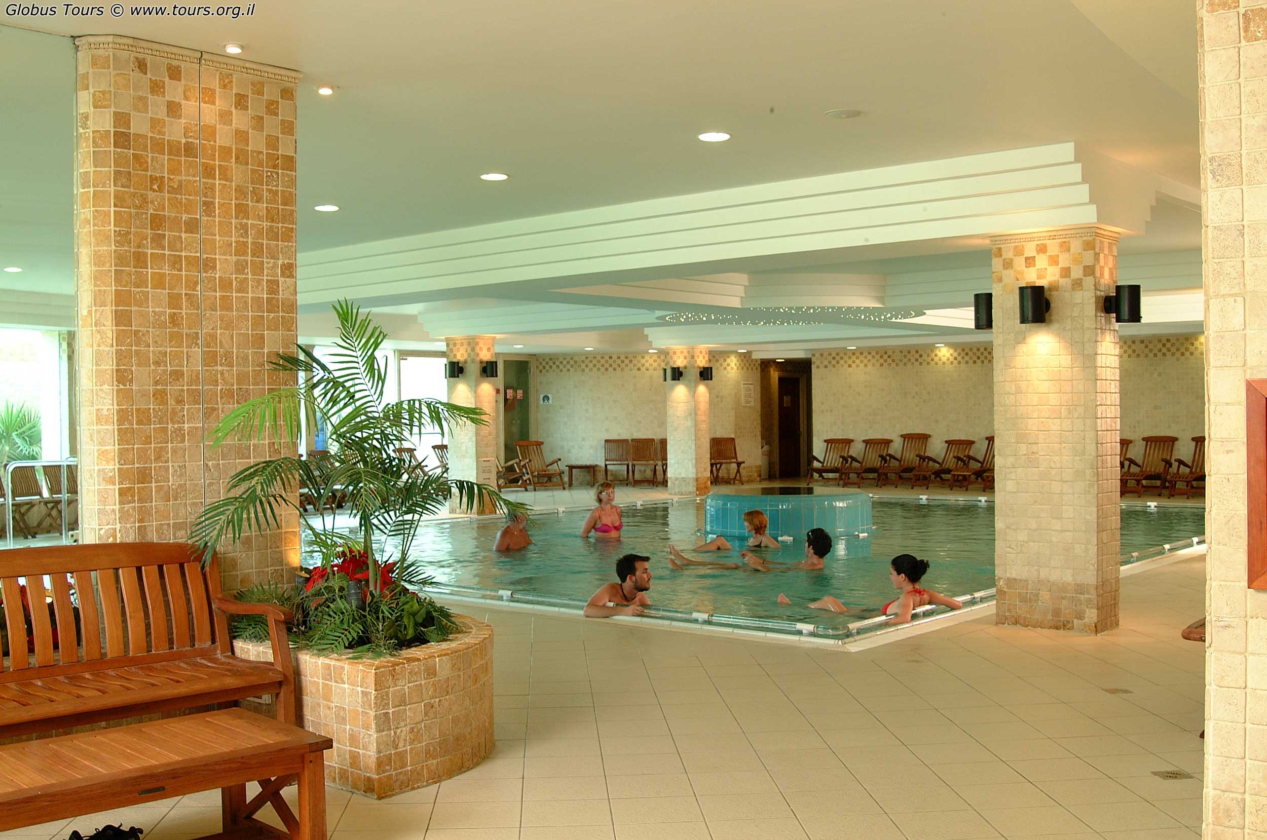 Открытый бассейн, смотрящий на море, а также комплекс SPA “Ma’ayan”, включающий: бассейн с водой из Мертвого моря, сауны сухая и влажная, джакузи, сероводородные ванны, массажные ванные, а также большой набор косметических и лечебно-оздоровительных процедур.