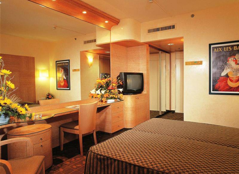 Насчитывает 203 номера. В каждом – кондиционер, телефон, большой телевизор, кофейный уголок, холодильник, сейф и фен.