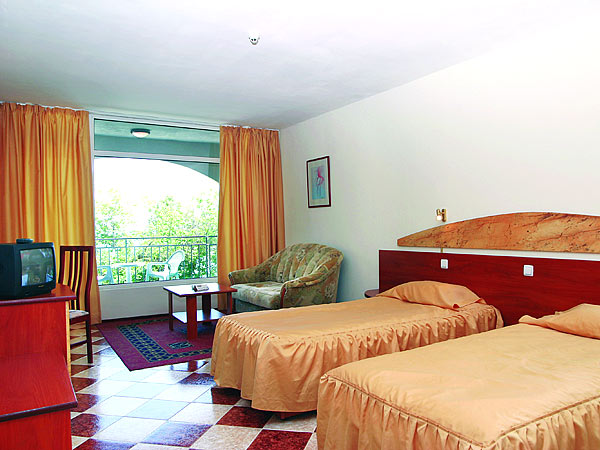 Расположен на берегу моря. Всего 220 двухместных стандартных номеров