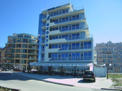 Отель «Регата» находится в старой части города Поморие, на берегу моря. Типы номеров: двухместные номера, студии, апартаменты.