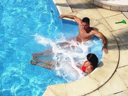 Благоустроенный галечный пляж находится непосредственно перед отелем, в 80 м.