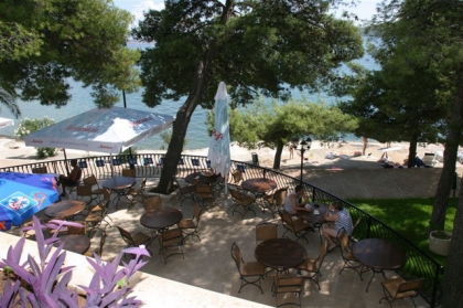 Галечный пляж находится в 60 м от отеля. Зонтики, лежаки на пляже предоставляются за дополнительную плату. Одна часть пляжа - платформа с шатрами для загара, а вторая - небольшие бухточки с живописными камнями и нависающими соснами, но к вечеру там могут встречаться морские ежи, поэтому рекомендуется приобрести специальную обувь.
