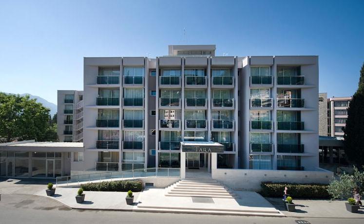 Отель «Тара» расположен на песчаном побережье Адриатического моря в Бечичах, между отелями Montenegro и Mediteran. Представляет собой разноэтажное (6-4-5 этажей) здание. Всего в отеле 225 номеров: 143 стандартных DBL (23-32 м2) с прямым или боковым видом на море или парк и французским балконом. Максимальное размещение – 2 человека, 54 стандартных TRPL (30 м2) с видом на море или парк, обычный балкон. Максимальное размещение – 3 человека, 28 двухкомнатных Family (50-60 м2) с видом на море или парк. Максимальное размещение – 4 человека, 2 апартамента (104,5 и 184,5 м2) с видом на море, состоящих из двух спален, двух ванных комнат и гостиной. Максимальное размещение – 6 человек