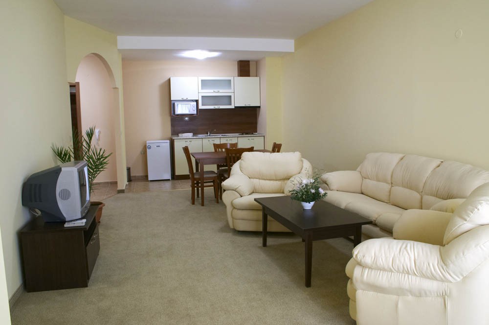 - Отель расположен в парковой зоне курорта Золотые Пески. в отеле 3 корпуса, 75 апартаментов с 1-й спальней (макс. 2+2 чел., 85 кв.м),
