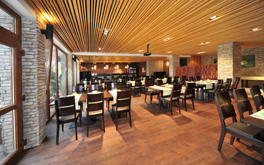 На первом этаже расположен ресторан с отличной кухней, современный бар и детская игровая площадка. Цокольный этаж апартаментного дома предлагает к Вашим услугам оздоровительный центр с 4 видами саун и большим бассейном-джакузи Ривьера. Здесь также расположен конференц-зал, который также может использоваться для настольного тенниса и бильярда, имеется склад для лыж и сушилка лыжного оснащения.