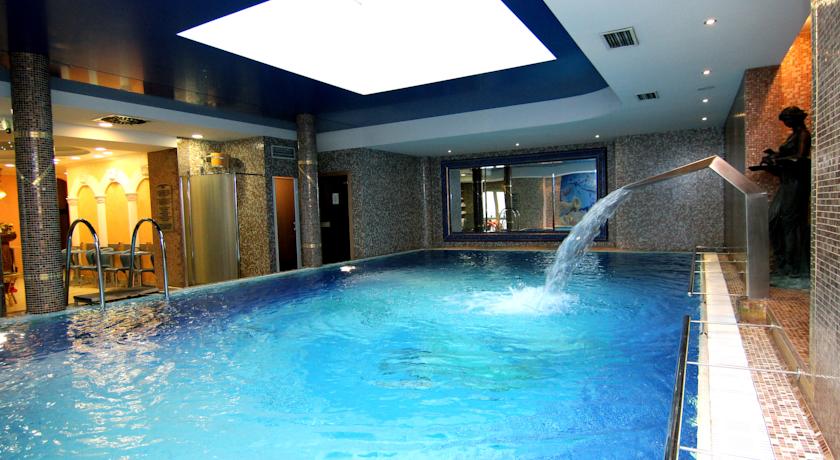 Закрытый бассейн с противотоком и массажными струями, размером (10м×5м×1,2м). Бассейн открыт с 08:00 до 20:00 часов,для гостей отеля бесплатно. Сауну и мокрую сауну Вы можете посещать в удобное для Вас время. Также предлагаем Вам посетить процедуры по уходу лица и тела. В фито-баре бальнеоцентра Вы можете выпить свежевыжатый сок, различные травяные чаи, витаминные коктейли, бодрящий кофе и какао.