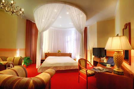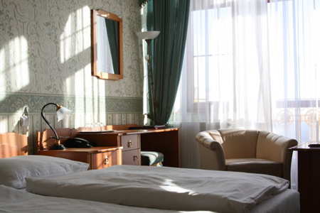Стандартный номер: Стандартный номер с двуспальной кроватью или двумя односпальными кроватями , ванная комната и туалет, телевизор со спутниковой антенной, телефоном, мини- баром, сейфом и феном.