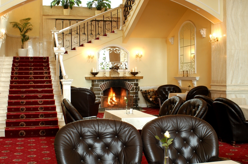 Холл с камином, конференц-зал на 200 мест, банкетный зал на 45 мест, охотничий салон на 35 мест, сауна с большой гидромассажной ванной, бассейн, массаж, бильярд, хранилище для лыж, паркинг