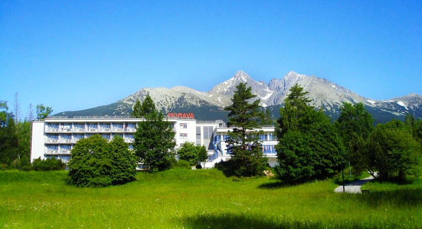 Расположен 150 м от канатной дороги Скалнате Плесо (Skalnaté Pleso), в центре курорта.