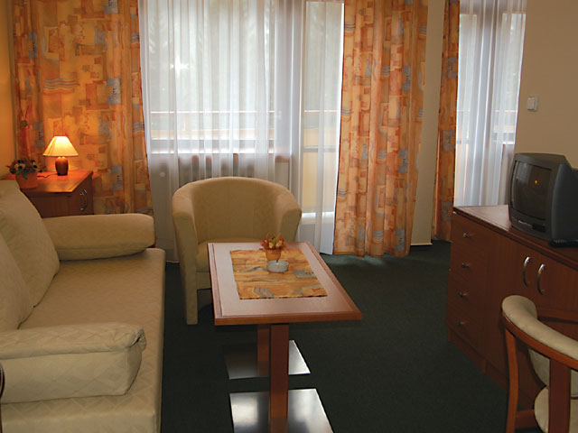 Тип номеров: одноместные с дополнительной кроватью, двухместные, аппартаменты с двумя дополнительными спальными местами В номерах: ванна, туалет, телефон, телевизор, радио, в аппартаментах дополнительно холодильник.