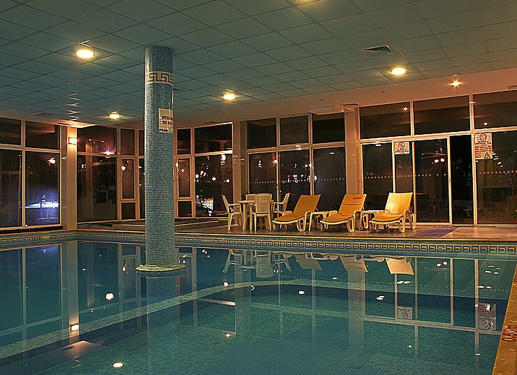 - Открытый и закрытый бассейны. лежаки и зонты у бассейна;