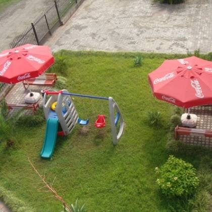 Автостоянка, детская площадка, большой двор- сад веранда, кафе - бар, Интернет, детская площадка - качели, теннис.