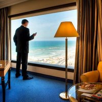 Mediterranean Suite (new) - панорамный вид на Средиземное море и город Тель-Авив / Яффо, дает оптимальное ощущение роскоши и комфорта. шикарный кожаный диван, электрические жалюзи, современные светильники, большой телевизор LCD- а так же DVD. В каждой свите аппарат для приготовления кофе , ванна с видом на море.
