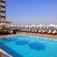 Mediterranean Suite - на 19 этаже, с видом на Средиземное море. Состоит из двух комнат: cпальня, салон с раскладным диваном и большой рабочей зоной,уголок для отдыха, обеденный стол на 4 персоны, большая ванная комната с видом на Средиземное море, отдельный туалет для гостей.