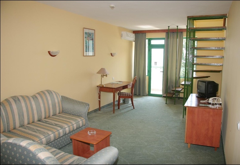 Расположен в центральной части курорта Золотые пески. В отеле 109 двухместных номеров и 8 мезонетов