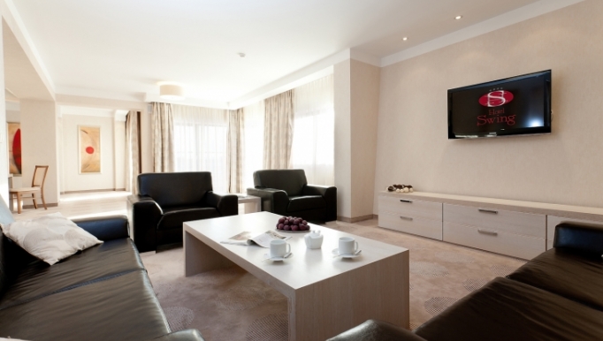 Гостиница Swing располагает 146 современными, кондиционированными и роскошно снабженными номерами (292 места). Структура номеров: 3 комфортабельные апартаменты, 2 номера для Гостей-инвалидов, а также 6 номеров студийного типа – идеальное решение для семей с детьми и двухместные номера с одной двухспальной или двумя односпальными кроватями