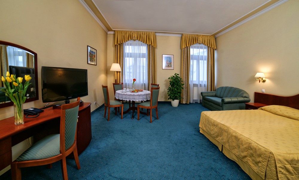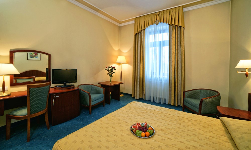 Отель располагает 73 комфортабельными номерами: 11 одноместными номерами, 62 двухместными номерами, а также 2 президентскими апартаментами. Апартамент состоит из гостиной и спальни, дополнительно может соединяться еще с одноместным номером. Апартамент оснащен ванной комнатой с джакузи, халатами, минибаром, спутниковым телевидением, бесплатным доступом к Интернету, телефоном, радио.