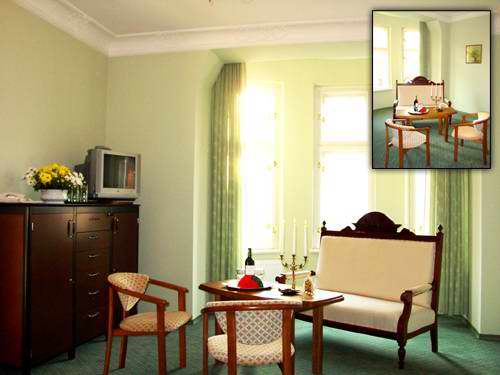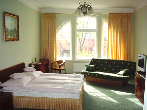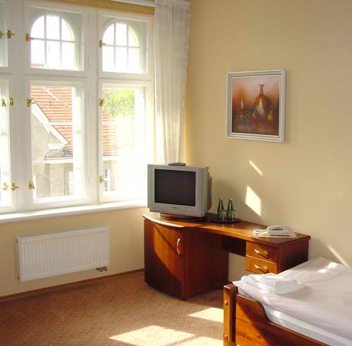 Гостинница имеет трёхкомнатный апартамент, 5 двухкомнатных апартаментов, 8 одноместных номеров и 17 двухместных номеров, в этом три номера дэлюкс – вместе 65 спальных мест. Все комнаты характеризуются оригинальной внутренней аранжировкой, сохраненной в сецессионном стиле, в который вкомпонировано современное оборудование: TV- сат, телефон, канал Интернет. В каждой комнате гардероб и комфортабельная ванная.