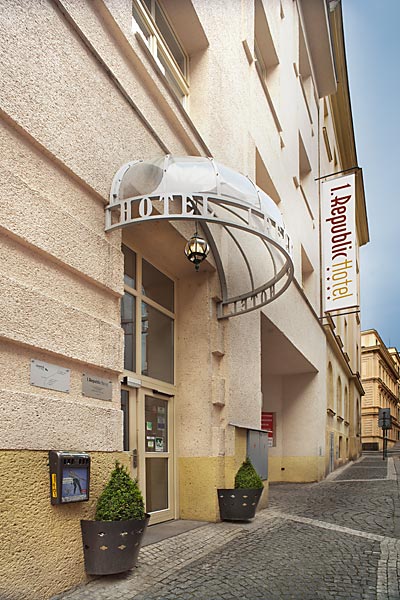 Отель «1 Republic» находиться в самом центре Праги, приблизительно в 400метрах от Вацлавской площади, в тихом и спокойном месте, но при этом в непосредственной доступности городского транспорта. Он возник в результате реконструкции дома времен Первой республики, (год строительства 1926), а затем был оборудован и сертифицирован на уровне 4٭٭٭٭, согласно стандартам AHR ČR. ( Первая республика, обозначает период в истории Чехословакии в промежутке от её возникновения в 1918 году и вплоть до Мюнхенского соглашения 1938 г.; последующий период, вплоть до оккупации остатков республики обозначается как Вторая республика. Эти обозначения были введены по аналогии с Францией, где принята нумерация республик со времен Великой Французской революции.) Отель предлагает для своих гостей стандартные службы на уровне 4 ٭٭٭٭, а, кроме того, присмотр за детьми и услуги детского уголка. И, конечно же, бесплатный выход в Интернет. Мы всегда стараемся предложить нашим гостям какой-нибудь приятный сюрприз, а поэтому для каждого гостя, прибывающего в наш отель, сразу по приезду, мы сервируем уникальный торт, приготовленный по тайному семейному рецепту управляющего делами отеля, относящегося к эпохе Первой республики. Этот деликатес попробовали, например, Др. Франтишек Богоунек, Мария Кюри-Складовская и другие выдающиеся деятели времен Первой республики.