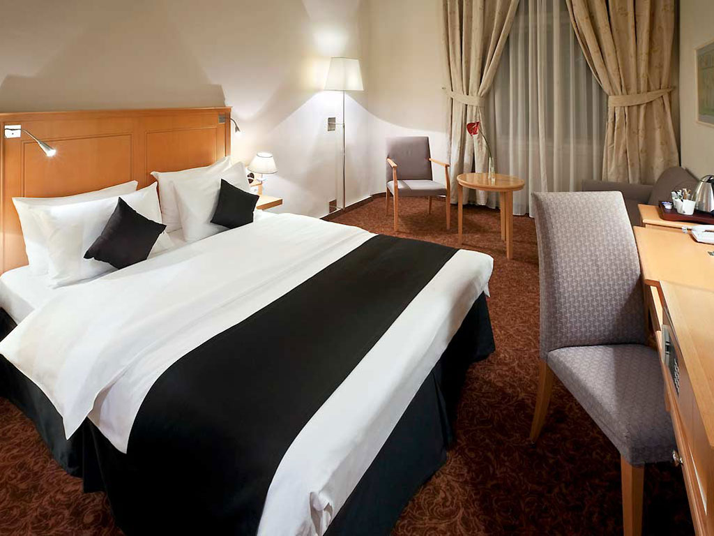 Отель выполнен в стиле нео-барокко. К услугам гостей 174 современно оборудованных номера с ванной комнатой c душем и WC, феном. В номере спутниковое телевидение, сейф, радио, телефон с прямым выходом, мини-бар.