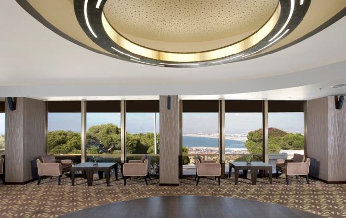 Большой современный отель, расположенный на горе Кармель, откуда открывается захватывающий вид на окрестности: город, Средиземное море, Хайфский залив, гора Кармель.