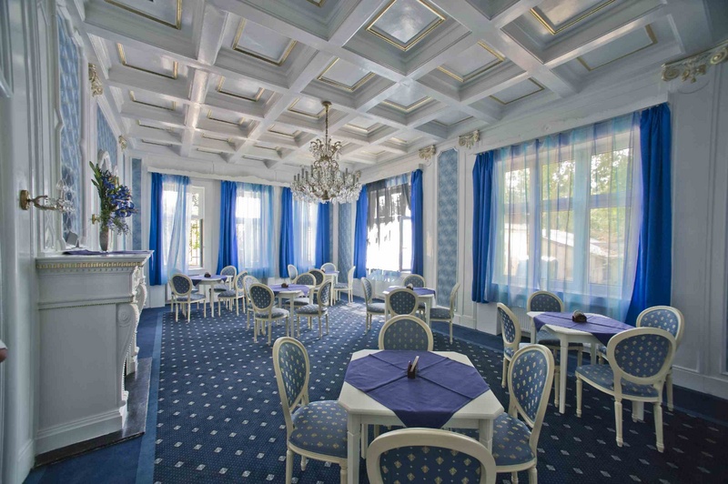 Ресторан в классическом стиле в новом здании, голубой салон в старом здании.