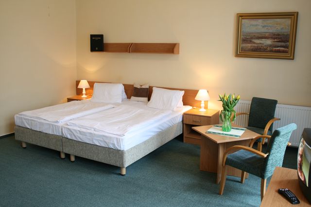 Во всех номерах: Телевизор, кабельное телевидение, русский канал, телефон, радио,сейф, фен и утюг по запросу, холодильник. Подключение к интернету – по тел. тарифу. Возможность дополнительной кровати. Невозможно размещение с домашними животными.
