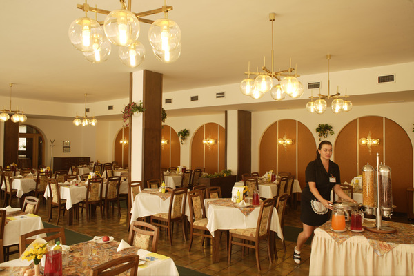 Завтраки, обеды и ужины проходят в ресторане гостиницы. Интернациональная и чешская кухня, диетическое питание. Завтрак: 7:15 — 9:00, в воскресенье 7:15 — 9:30 Обед: 11:30 — 13:30 Ужин: 17:45 — 19:00