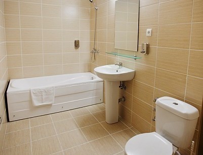 - Ванная комната с ванной и душем, санузел, туалетные принадлежности;