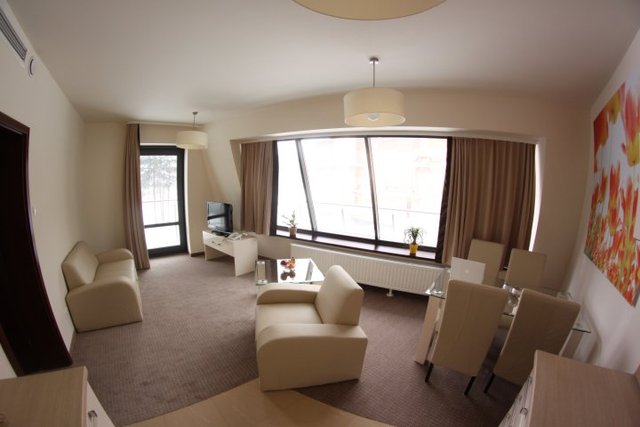 В апартаментах 4 чел.: ванная комната,гостиная с оборудованным кухонным уголком, раскладным двухместным диваном и 1 спальной комнаты с двуспальной кроватью, балкон. В апартаментах 6 чел.: ванная комната, гостиная с оборудованным кухонным уголком, раскладным двухместным диваном и 2 (проходных или смежных) спальные комнаты с двуспальными (или двумя односпальными) кроватями, балкон. Некоторые апартаменты двухуровневые (Maisonette), спальня в них располагается на втором уровне и не отделена от гостинной. Во всех апартаментах: кондиционер, балкон (ы), телефон, ТВ.