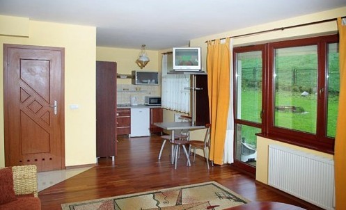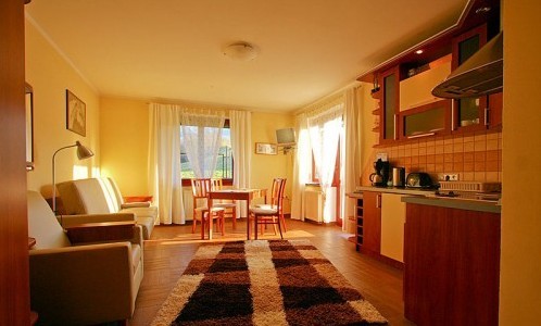 4-х местные апартаменты состоят из гостиной с кухонным уголком и ОДНОЙ (проходной или смежной) спальной комнаты. Спальные места в таком апартаменте представлены двуспальной кроватью в выделенной спальной комнате, и раскладным двухместным диваном в гостиной. В апартаменте нет выделенной в отдельное помещение кухни.