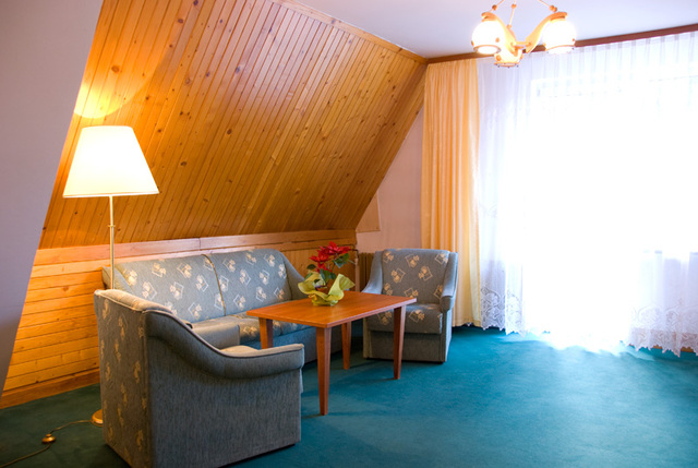 В стандартном номере:ванная комната (ванна/душ), спутниковое ТВ, радио, телефон, интернет WiFi. Большая часть номеров с балконом, видом на Татры.