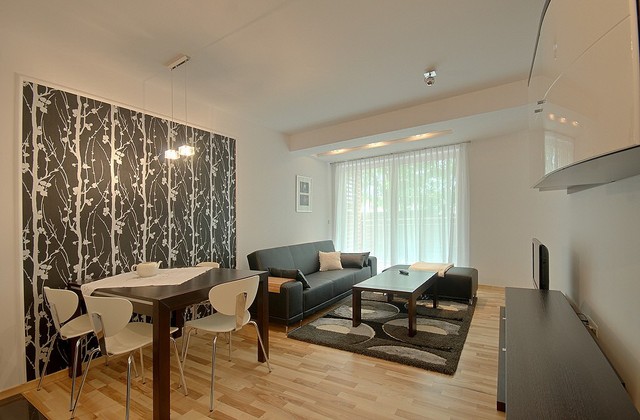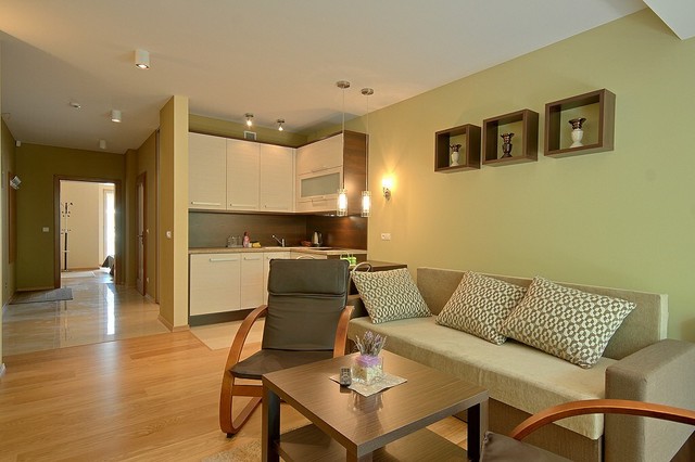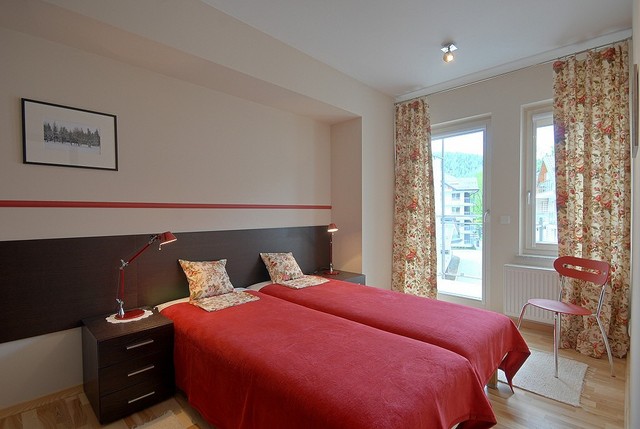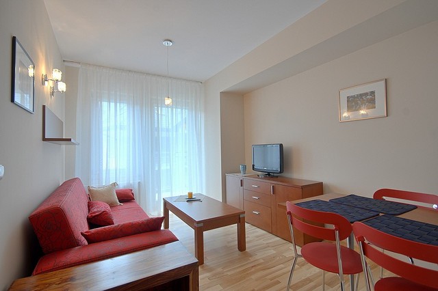 Для Гостей приготовлено апартаменты разных размеров от 32 до 149 кв. м), со всеми удобствами. 4-х местные апартаменты состоят из гостиной с кухонным уголком и ОДНОЙ (проходной или смежной) спальной комнаты. Спальные места в таком апартаменте представлены двуспальной кроватью в выделенной спальной комнате, и раскладным двухместным диваном в гостиной. В апартаменте нет выделенной в отдельное помещение кухни. 6-ти местные апартаменты состоят из гостиной с кухонным уголком и ДВУХ (проходных или смежных) спальных комнат. Спальные места в таком апартаменте могут быть представлены двуспальными (или двумя односпальными) кроватями в каждой из выделенных спальных комнат, и раскладным двухместным диваном в гостиной. Апартаменты могут быть двухуровневыми и спальня в них может быть антресольного типа и не иметь двери в гостиную. В апартаменте нет выделенной в отдельное помещение кухни.