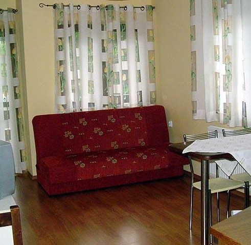 Апартамент 2+2 с балконом (APART #5, 4 PAX) - салон, спальня, ванная комната. В салоне кровать для двух человек, телевизор, кухонный уголок (плита, холодильник, комплект посуды). Во второй комнате двуспальная кровать.