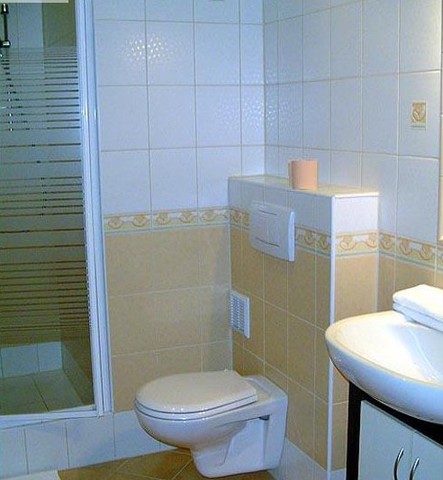 Апартамент с мансардной комнатой на втором уровне 2+2 (APART #4, 4 PAX) - салон, спальня (на втором уровне), ванная комната. В салоне кровать для двух человек, телевизор, кухонный уголок (плита, холодильник, электрический чайник, комплект посуды). Во второй комнате двуспальная кровать.