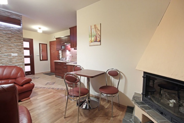 В апартаменте 4 чел: спутниковое ТВ, салон с раскладным диваном и камином, спальня с двухспальной кроватью,полностью оборудованный кухонный уголок, балкон с видом на Носаль, ванная комната/душ. Курение в апартаментах запрещено.