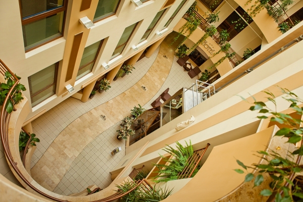 Гостиница PATIO расположена в центре города, рядом с Pыночной площадью, в тени одного из самых больших местных храмов. Существующий с 1996 г. объект прочно вписался своей архитектурой в картину самой красивой из улиц вокруг Рынка – улицы Келбасничей (ul. Kiełbaśniczа).Гостиница является частью офисно-гостиничного центра, находящегося в застеклённом патио.