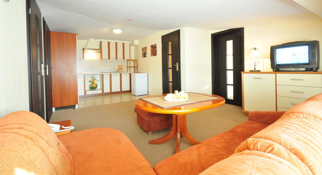 Пансионат располагает 72 местами в комфортабельных и элегантно оборудованных номерах одно, двух и трехместных, апартаментах и семейных студиях. Все номера оснащены ванными комнатами, спутниковым телевидением, а большинство из них балконами. Некоторые номера приспособлены для гостей-инвалидов.