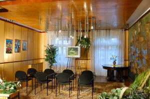 В здании находятся: столовая, телезал, кабинеты врачей и дежурных медсестер.