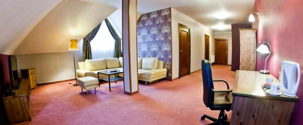 Гостиница росполагает номерами и апартаментами в 4 стилях: дворянском, африканском, в цветах земли и романтическом. Номера оборудованы спутниковым телевидением, радиоприемником, телефоном. В номерах есть возможность подключения к Интернету. Во всех номерах комфортные ванные комнаты с душевой кабиной.